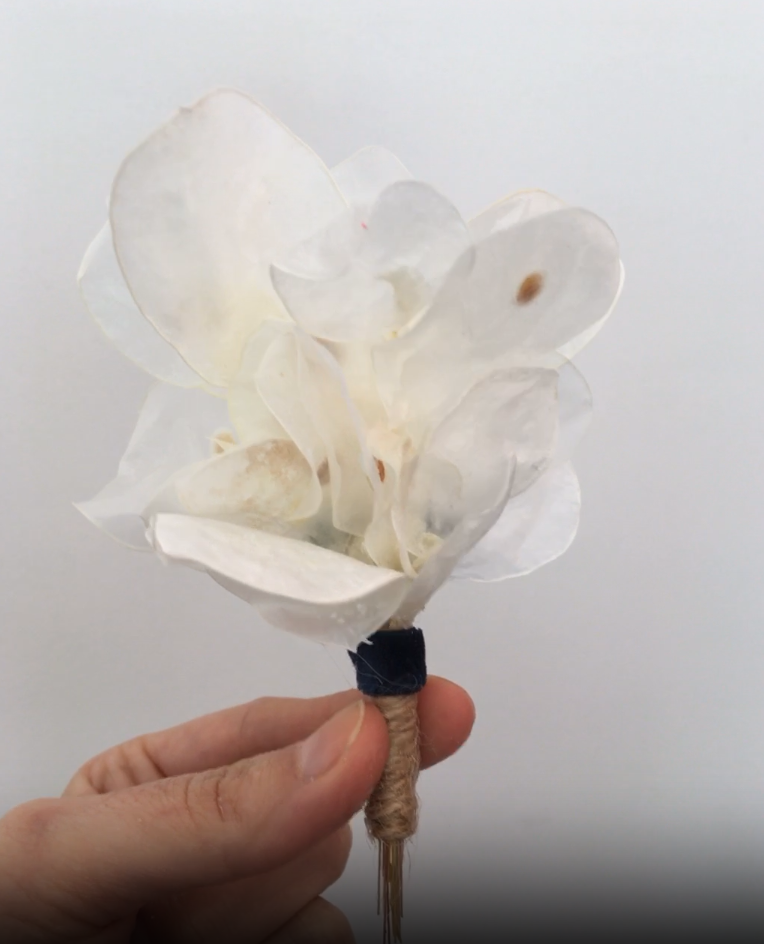 Prendido de flores silvestres preservada en blanco, de lunarias. Sencillo, sutil, elegante y perfecto para que los hombres más importantes de la boda estén en sintonía con el ramo y la decoración floral